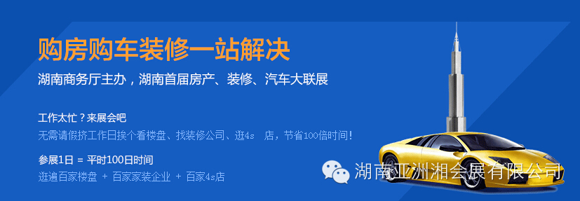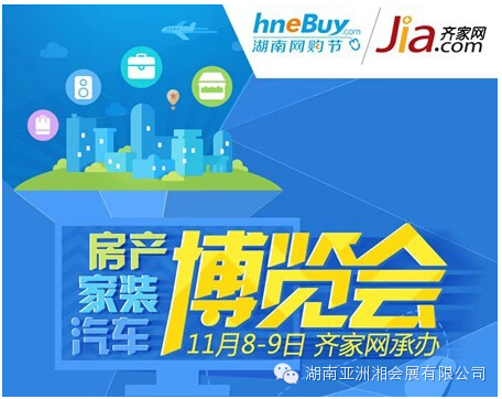 由湖南省商务厅主办,好房子网、齐家网、汽车行情网联合承办,创研科技特别支持的2014湖南网购节最大亮点活动——“房产家装汽车博览会”,11月8日—9日在长沙红星国际会展中心举行,湖南首次跨界联展,超大型房产电商活动,电商互联网模式办展,数百家品质楼盘、装修建材企业、汽车品牌集中让利,房博会、家博会、车展一网打尽,现场抽汽车送房子免装修费,打造湖南2014年下半年最有人气和最具效果的大型展会。